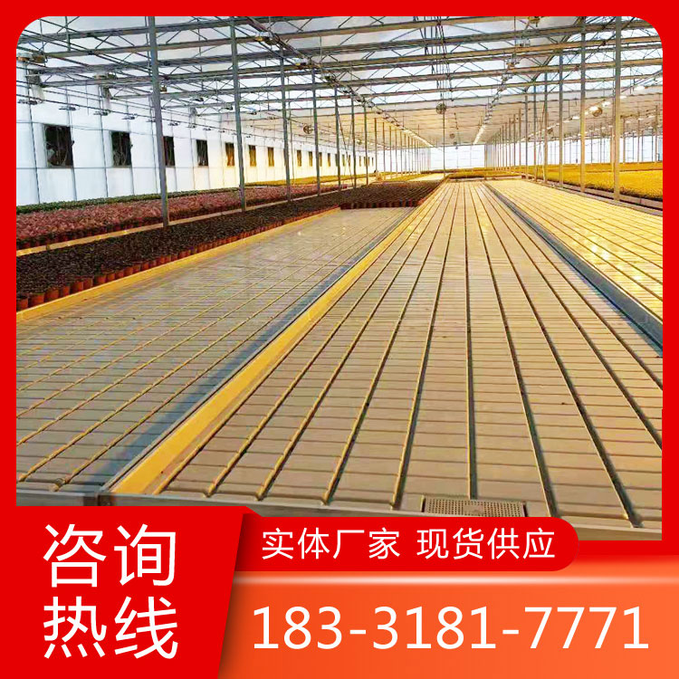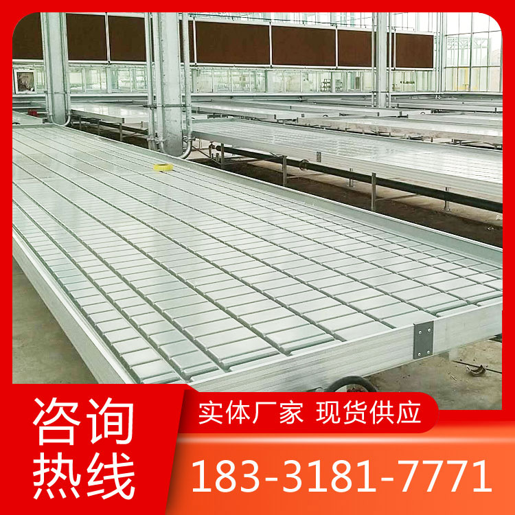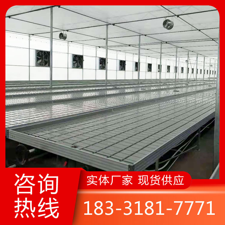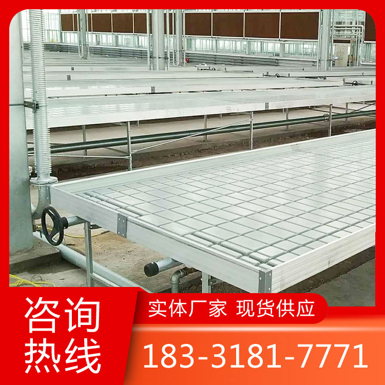 本溫室共設置1.7m*18.2m的苗床37臺,1.7m*22.75m的苗床31臺,苗床面積為:平米。可放置潮汐式床箱數量為:303個??煞胖醚ūP數量為:14544個。
